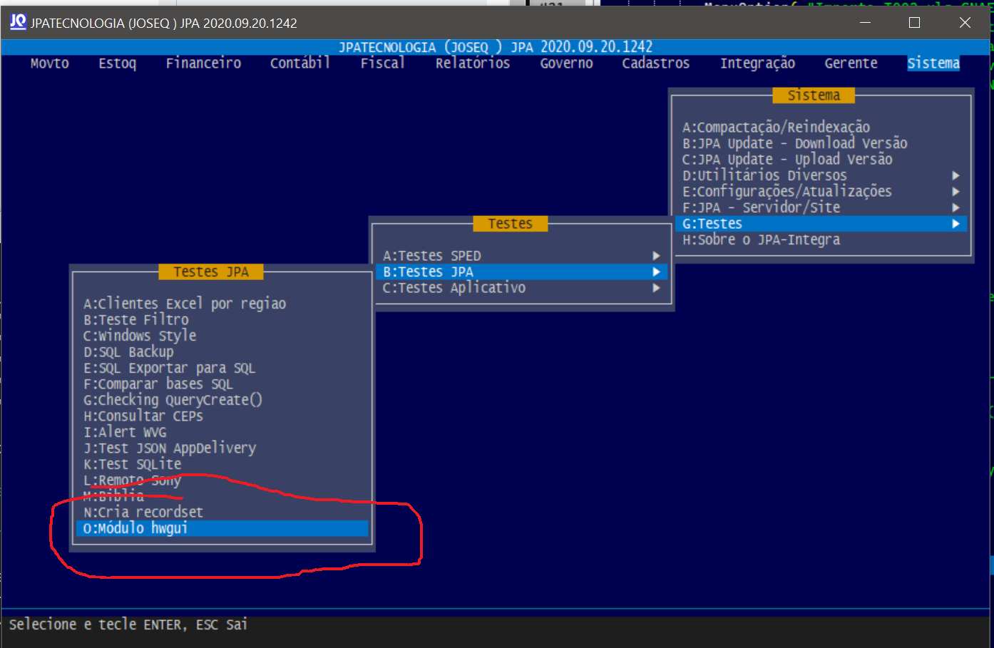 Vou na pasta hwgui: C <ENTER>