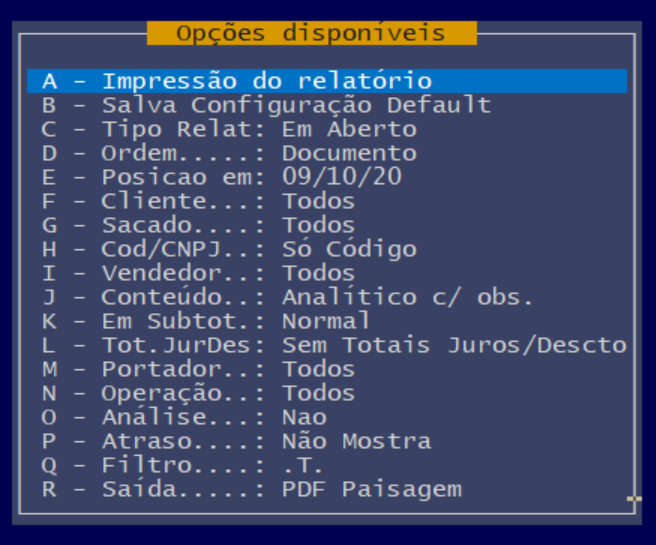 - Início/Fim – digita as datas inicial e final desejadas. Início em branco: a partir do recno(1). Final em branco: EOF().