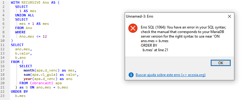 ( SEU SELECT ) AS B ON A.MES = B.MES