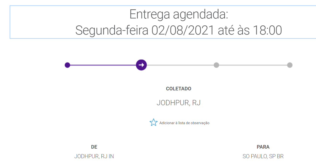 A previsão de 02/08 pra entrega continua, mas ainda está na Índia.