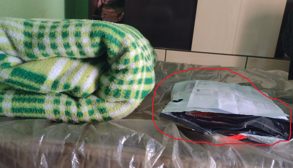 Esse pacotinho aí da foto é o tal cobertor e acessórios.