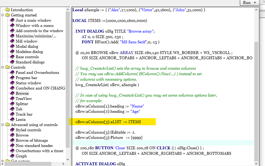 Erro hBrowse com array