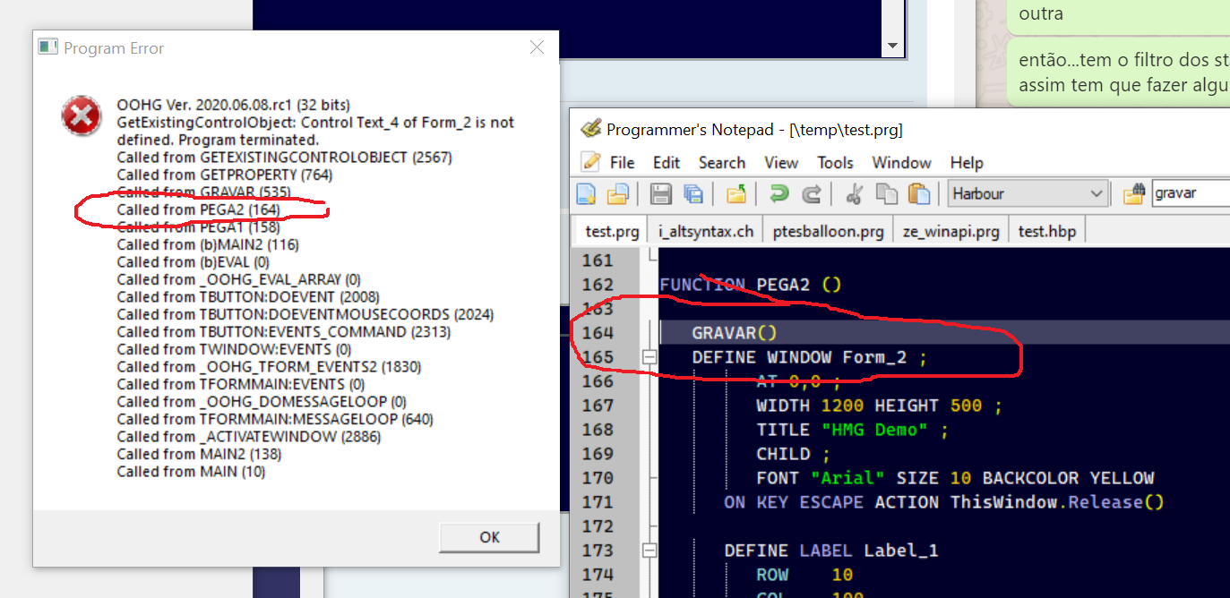Tenho um programa que abre a janela principal (main), a partir dos dados digitados no (main), ele abre a segunda janela (child). No entanto, ao tentar gravar o conteudo do textbox da 2a janela, o sistema dá erro na execução, com o seguinte alerta: "Control: Text_4 Of Form_2 Not defined. Program Terminated."