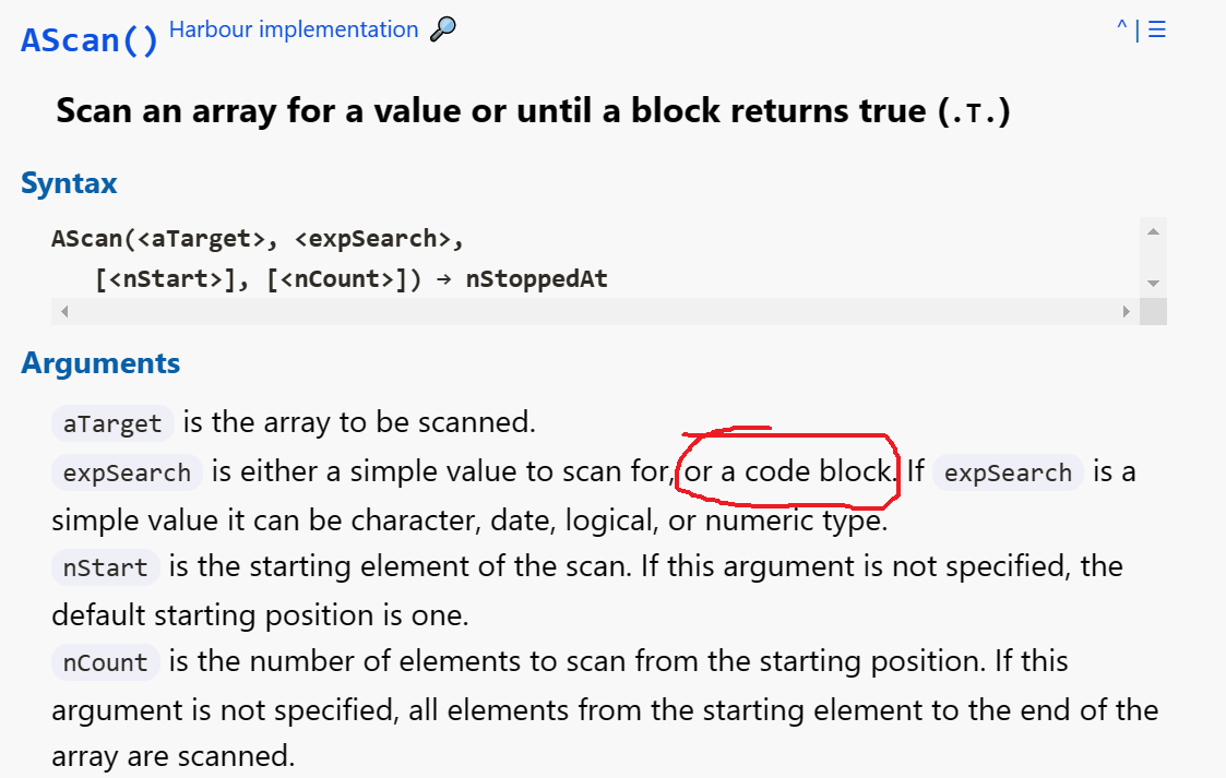 Nota: apesar de eu ter testado hb_AScan(), AScan() tem o mesmo resultado.