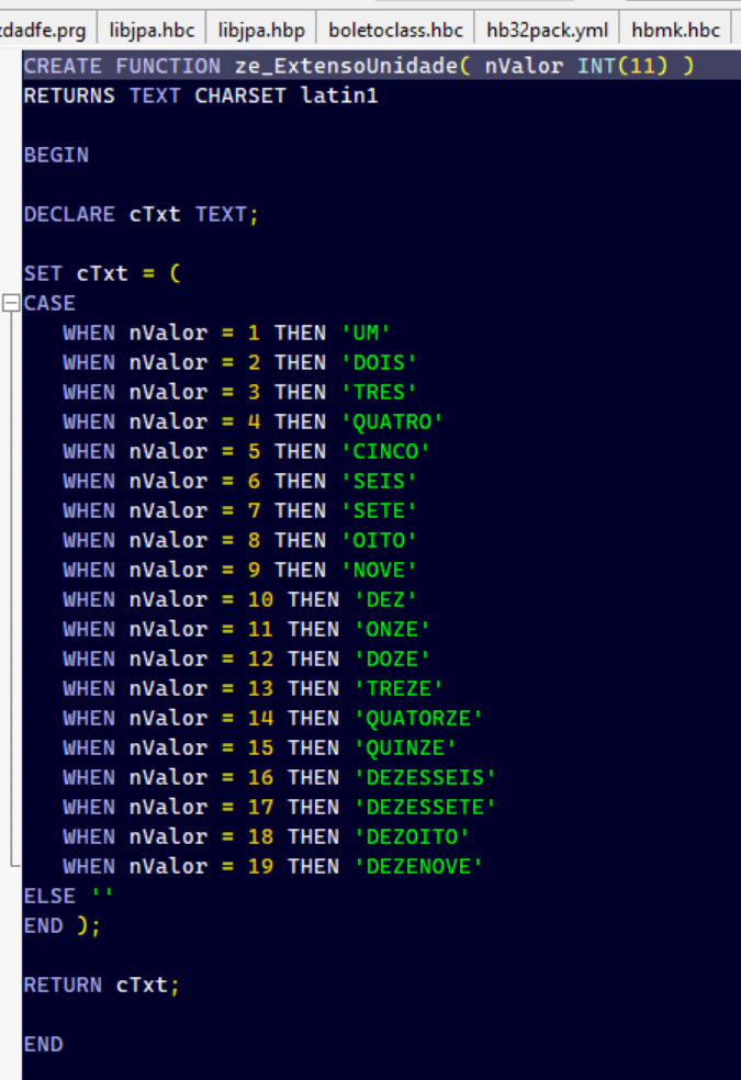 cQuery += "END "HARBOUR 3.2, HWGUI 2.23 B7, SEFAZCLASS, PDFClass, ADO + MariaDB/MySQL, RMChart, Python + FASTAPI , Android Kotlin