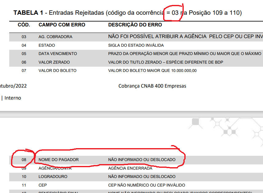 Num determinado cliente está acusando esses erros na remessa do ITAÚ, começou neste mês o erro.