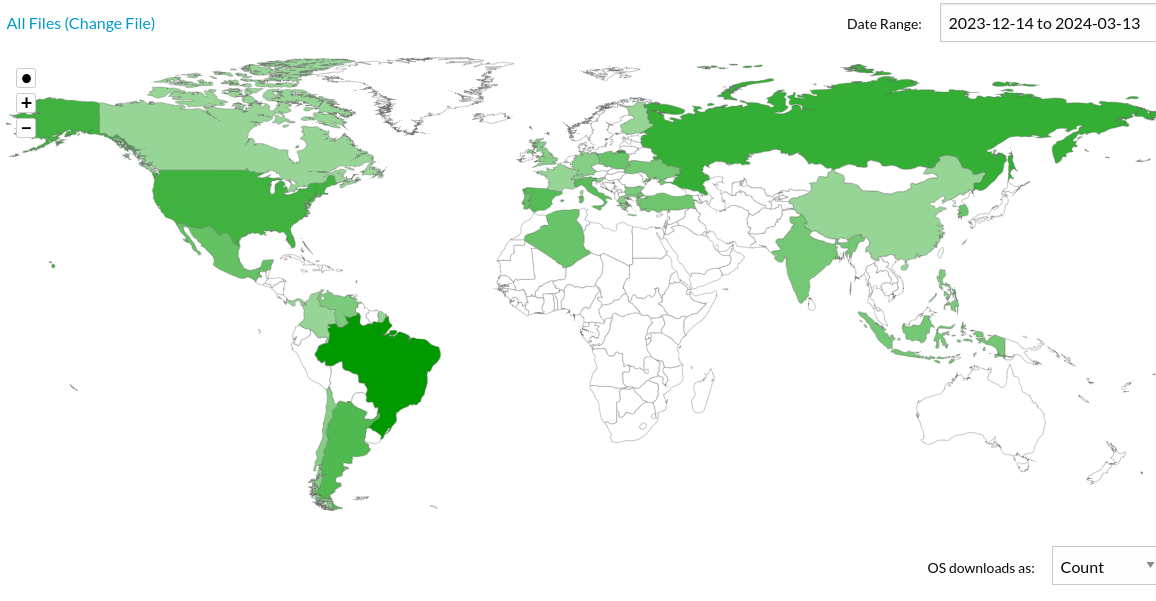 Fui bem modesto coloquei apenas 1 usuário por país no período. Acredito que é download pela URL https...