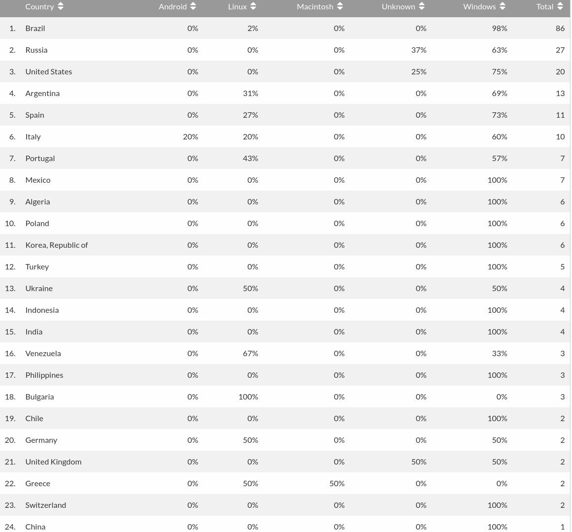 Até a Argentina ganha do Brasil no uso do Linux.