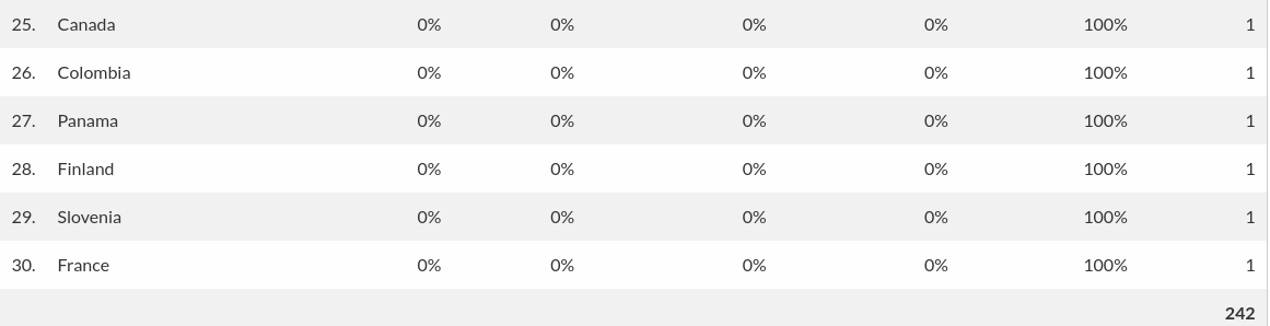 Tinha mais países abaixo da China. Por isso não tinha achado a França.