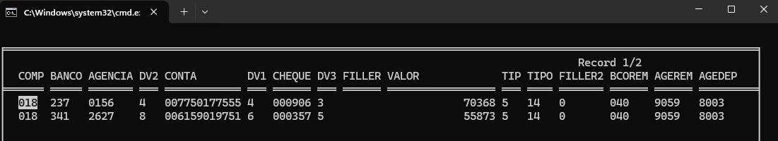 CONTA+DADOS->DV1+DADOS->CHEQUE+DADOS->DV3+DADOS->;