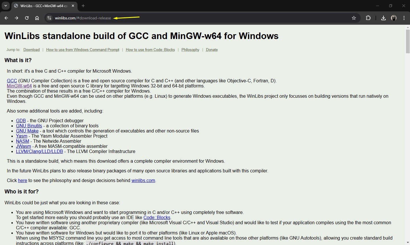 1) Baixei o mingw64: https://winlibs.com/ Instalei o mingw64 descompatando: