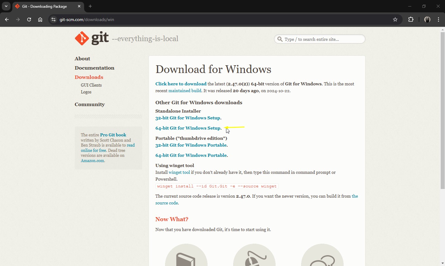 C:\mingw642) Baixei o git: https://git-scm.com/downloads/win Instalei o git