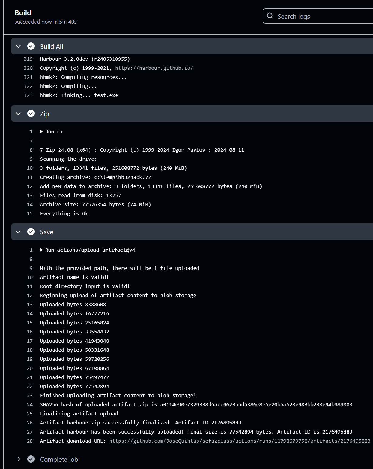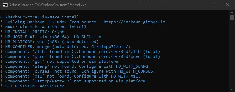 CD \harbour-core8) Executei o MAKE:
