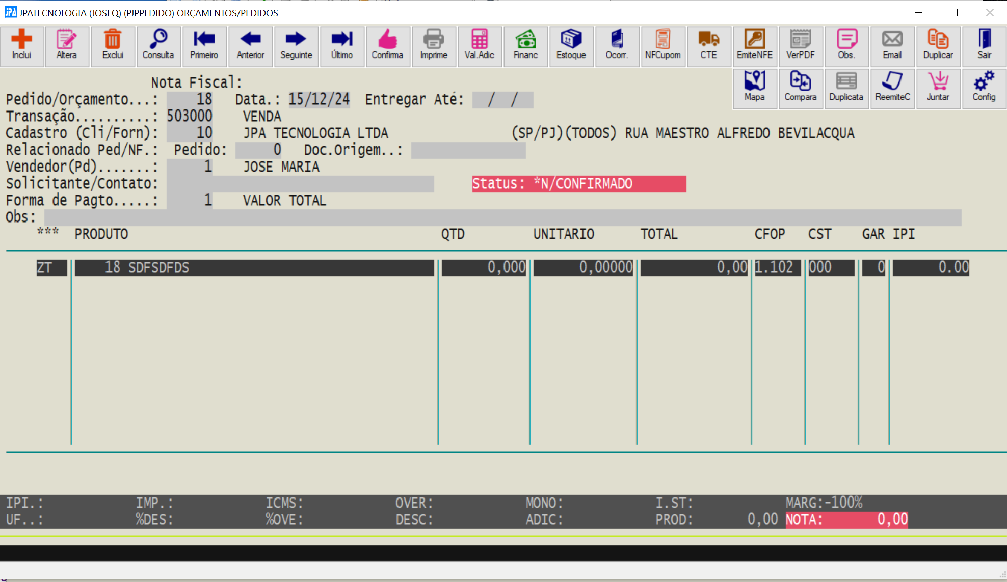 como teste, alterei a rotina de pedidos. o resultado foi o que postei