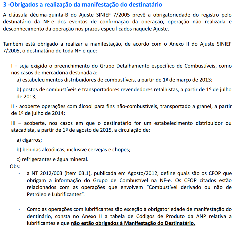 E para combustíveis, álcool... Conforme manual. Vou ver mais detalhes disso, pq a IA tá um inferno... informando tudo errado.O destinatário, pessoa jurídica inscrita no CGC/TE, está obrigado ao registro de evento relativo à operação de circulação de mercadoria com valor superior a R$ 100.000,00 (cem mil reais).