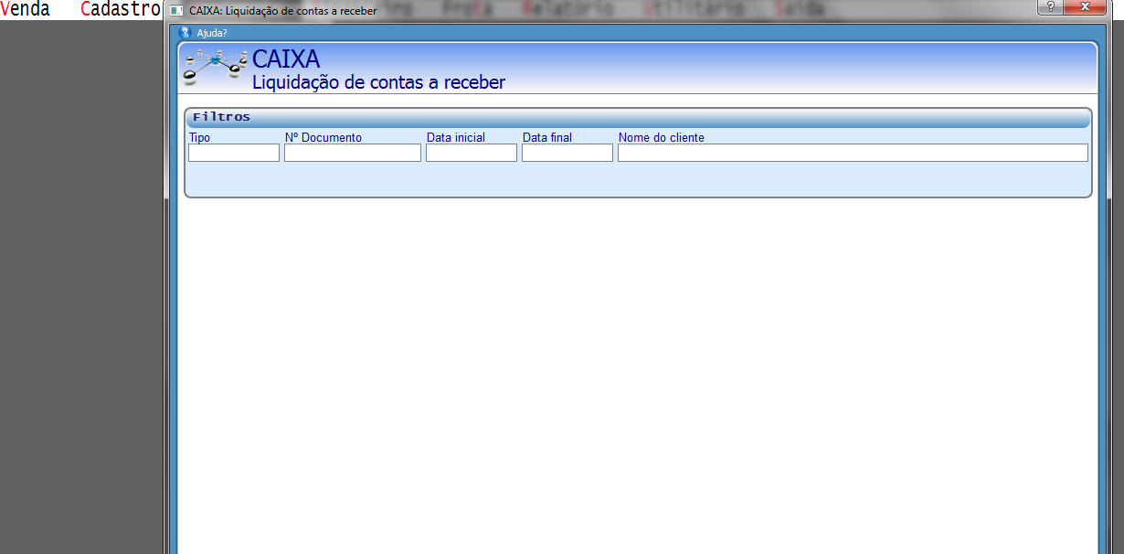 Tela exemplo do sistema em GTWVW com um módulo em QT (Liquidação de contas a receber)
