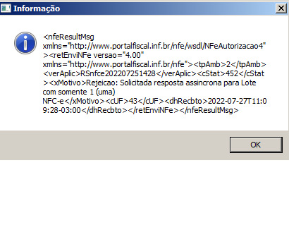 Pela mensagem, agora no RS ficou o síncrono pra uma nota, e assíncrono pra várias notas.