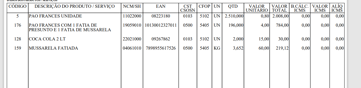 Num determinado PDF, dois produtos ficaram sem quantidade.