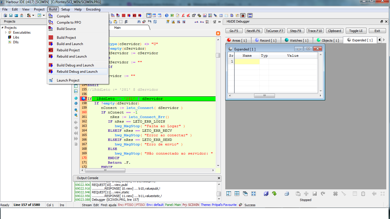 Poder debugar é muito importante para mim, pode haver necessidade de testar uma função ou procedure, até agora não consegui ver isso funcionando na hbide, alguém sabe como fazer?