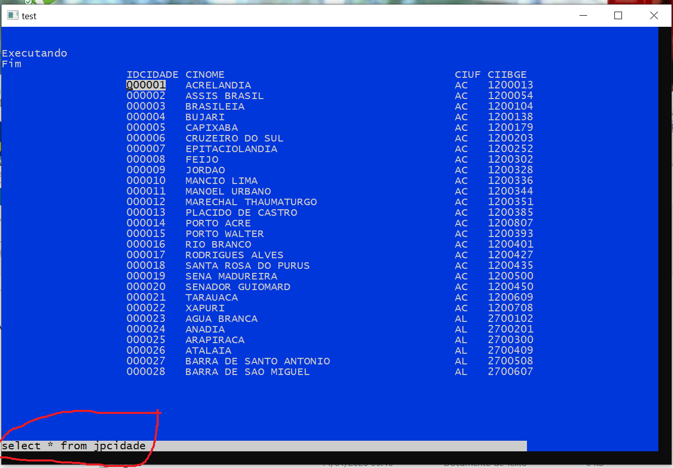 Só pra comparação com equivalente DBF, que seria o mesmo caso: