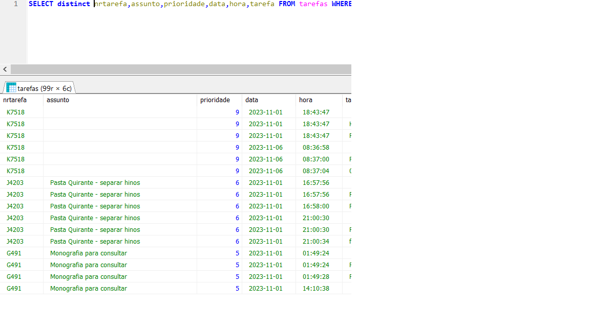 Mas o problema é que, assim, a consulta não fica como pretendia. A ideia do GROUP BY nrtarefa é que apareça apenas uma vez cada grupo de registros com o mesmo nrtarefa. Mas preciso passar para o browse todos os campos que estão no select.