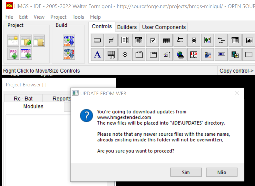 Ivanil, obrigado pelos esclarecimentos. Vou rever o download pra fazer um teste. Como disse, a HMG clássica me atende bem mas ver a Extended ter mais atualizações dá a impressão de ter novos recursos. Na verdade, não fico mexendo muito com essas coisas pra não ter alguma surpresa e ficar sem poder montar meus programas.