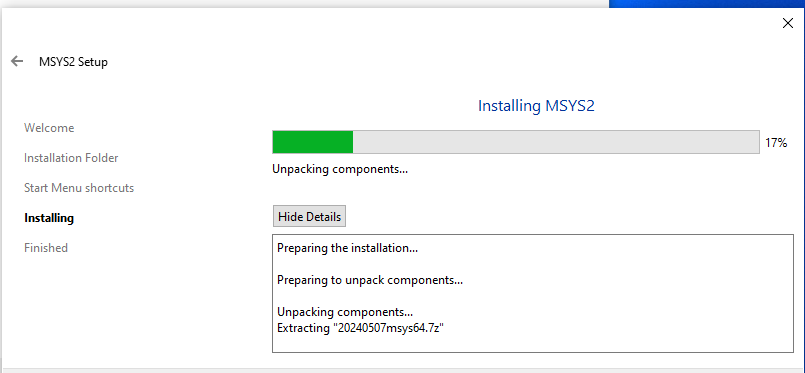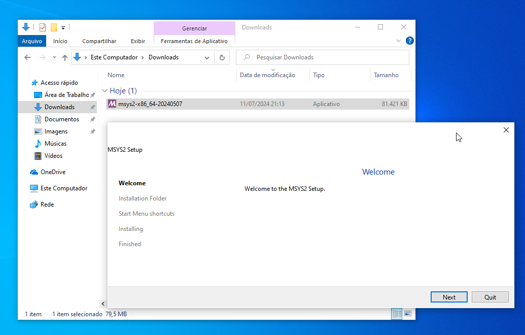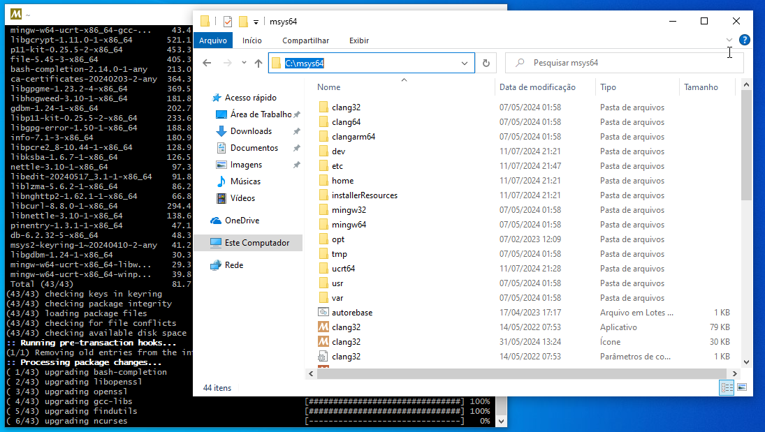 Instalando... Não mudo absolutamente nada! Extraindo os arquivos do Msys2 na pasta Msys64 Saudações,
