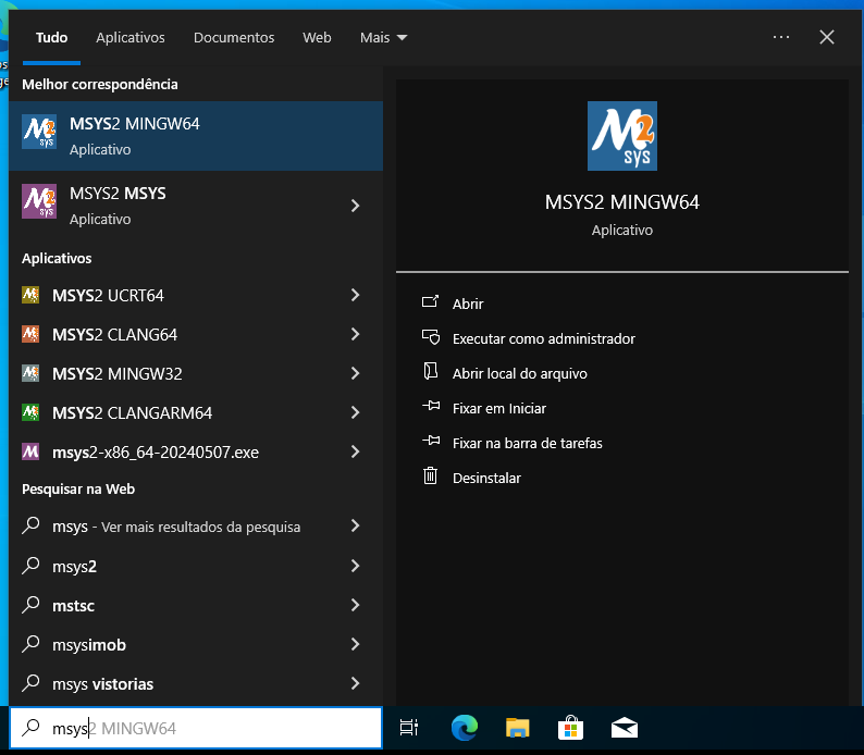 Não usei pq o msys2 é um ambiente LINUX(compilado para rodar no windows).