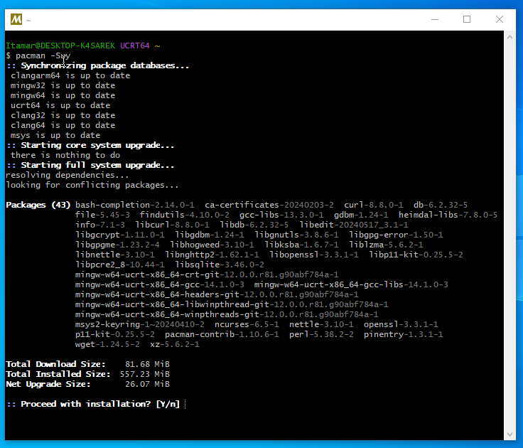 Abri o prompt do Msys2 UCRT64 e digitei -> pacman -Suy Saudações,