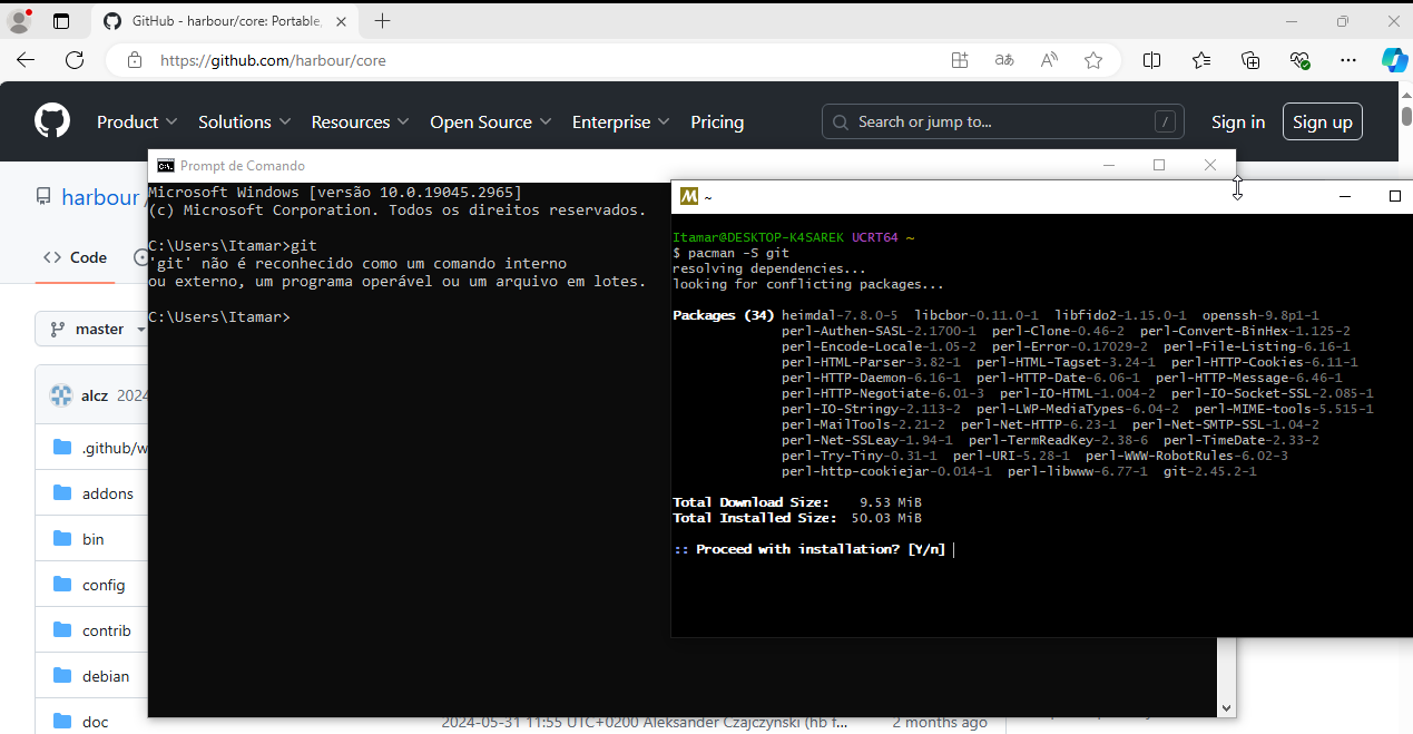 Eu coloquei os fontes do Harbour 3.2 na pasta c:\dev\hb32-core -> fora da pasta c:\msys64