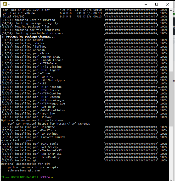 Quando termina, ele abre o terminal UCRT64 ~