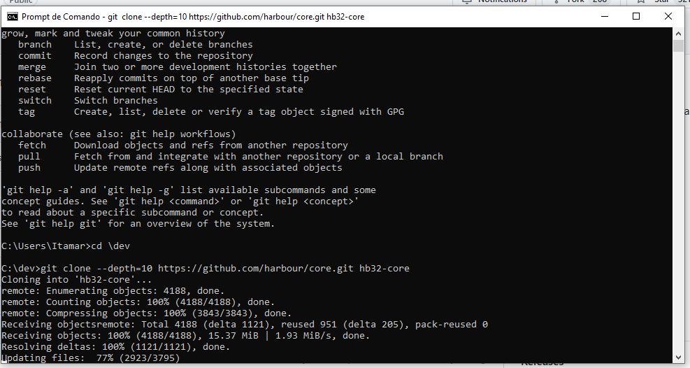 Clonando os fontes do Harbour 3.2, usando o prompt do windows!