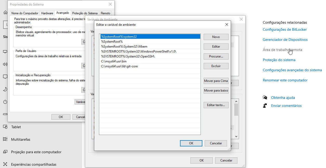 Precisa colocar o PATH de onde está o GIT lá na pasta do msys2.