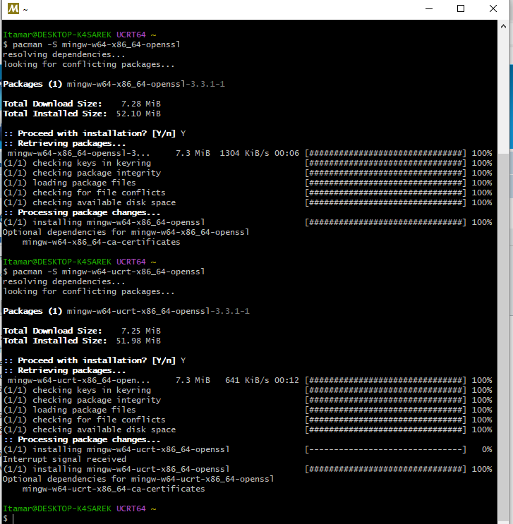 pacman -S mingw-w64-ucrt-x86_64-opensslSaudações,