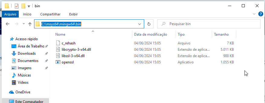 $ pacman -S mingw-w64-x86_64-opensslCódigo: Selecionar todos