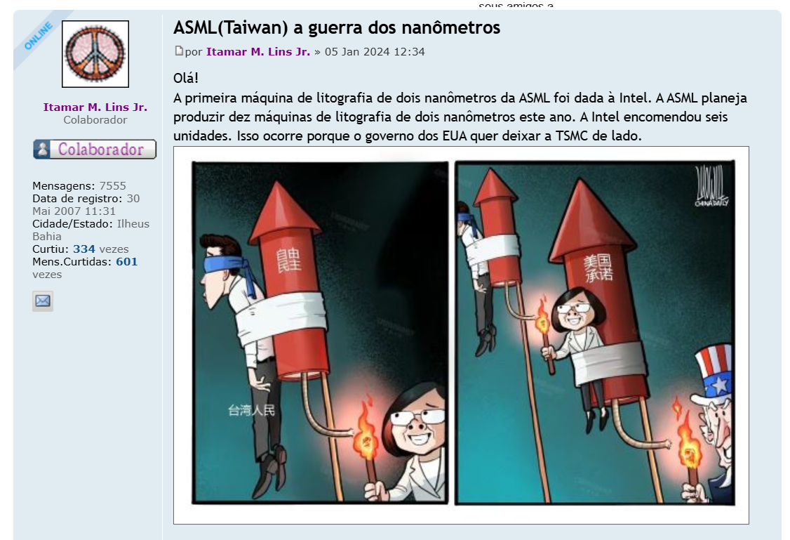José Quintas inventou que Itamar postou que a China comprou maquina de Taiwan.