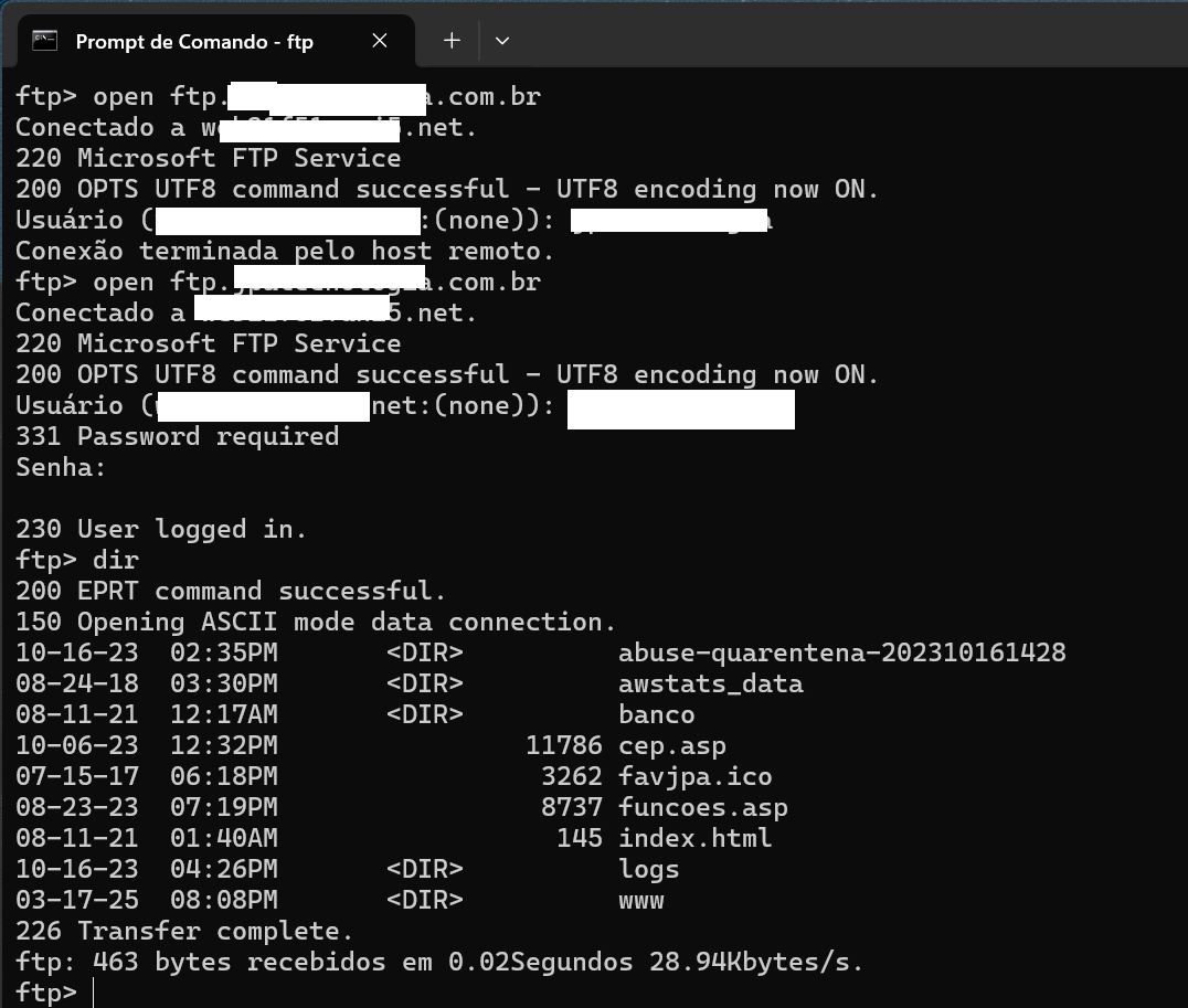 Aliás... esse é outro teste possível, testar com o FTP.EXE do Windows pra ver o que acontece.