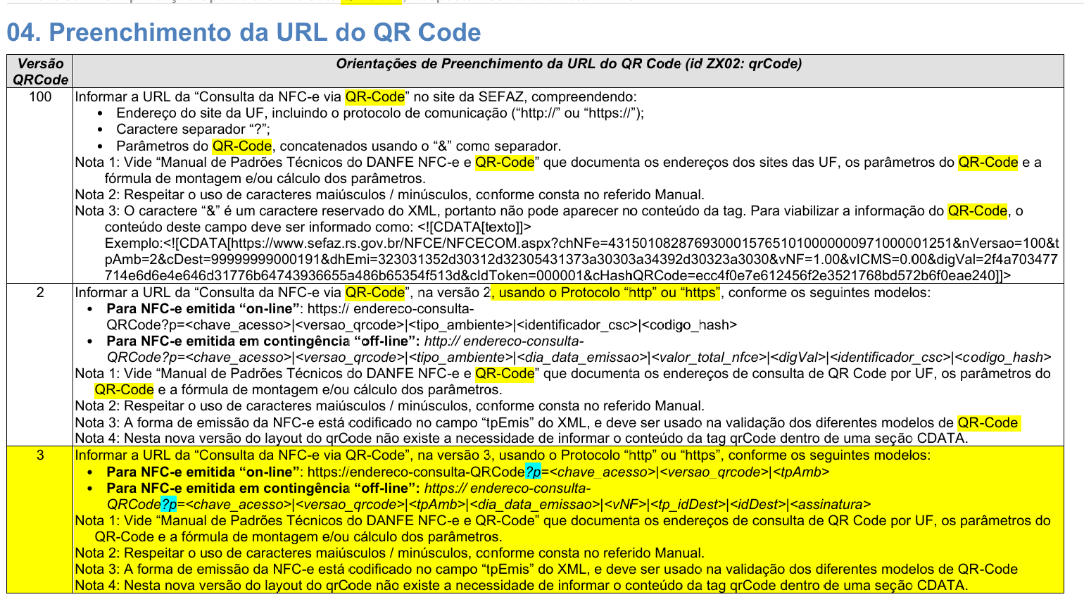 Nesta NT está definido o novo leiaute do QR-Code da NFC-e (versão 3). Nesta nova versão, o