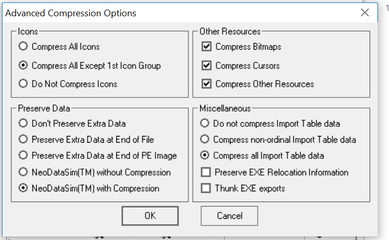 - Dá pra ver que alguns programas adicionam informação no final do EXE pra servir de resource, e a compactação altera o que seria o final do EXE