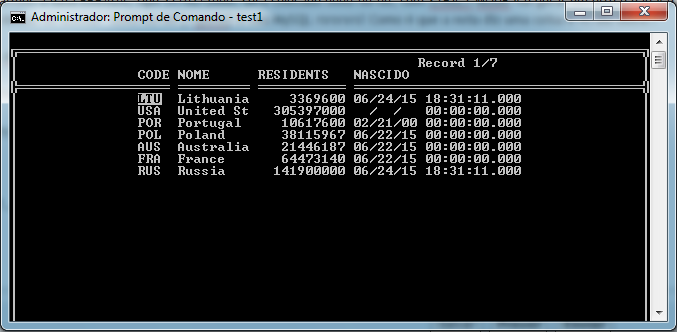 "INSERT INTO country values ('LTU', 'Lithuania', 3369600, '"+xDT+"'), ('USA', 'United States of America', 305397000, '0000-00-00'),...Código: Selecionar todos