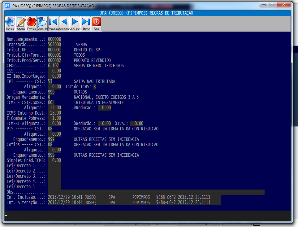 ALQ intra = alíquota interna aplicável à operação ou prestação no Estado de destino.”;