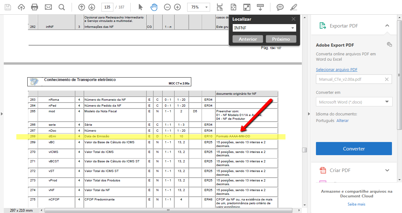 Caros, estou tentando emitir um conhecimento eletronico com o acbrnfemonitor. O monitor esta me retornando que a data dEmi esta invalida, fiz conforme o manual orienta. Segue abaixo o LOG.TXT e a pagina do manual onde diz. O q devo esta fazendo errado ?