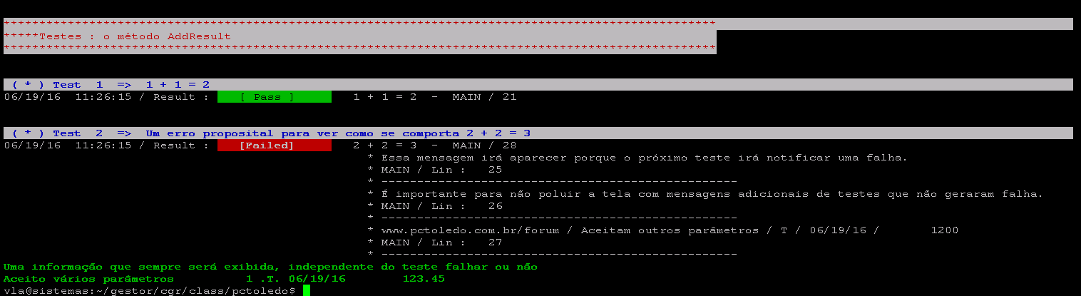 oTest:AddResult( "É importante para não poluir a tela com mensagens adicionais de testes que não geraram falha." )