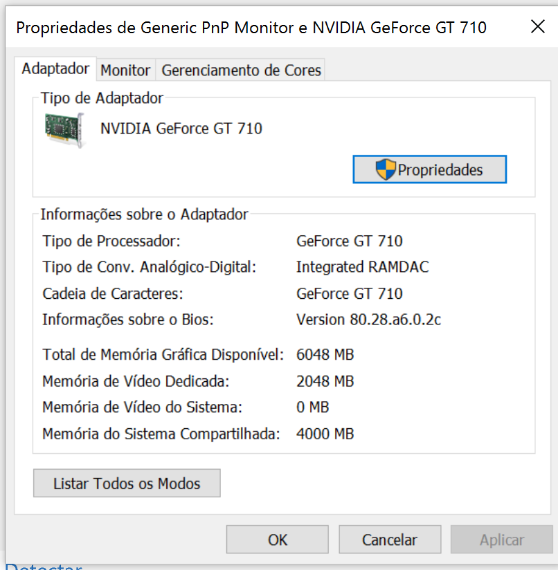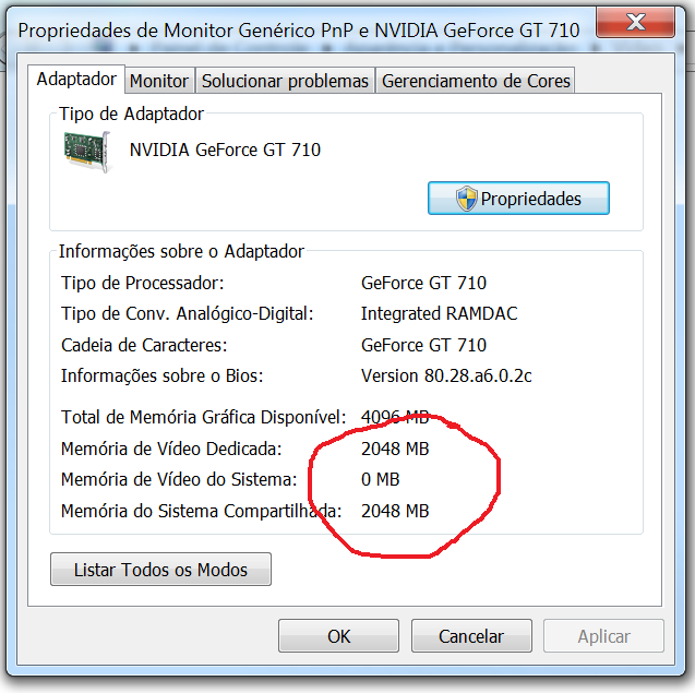 A placa de vídeo anterior tinha 16MB de memória, por isso peguei a com 2GB.
