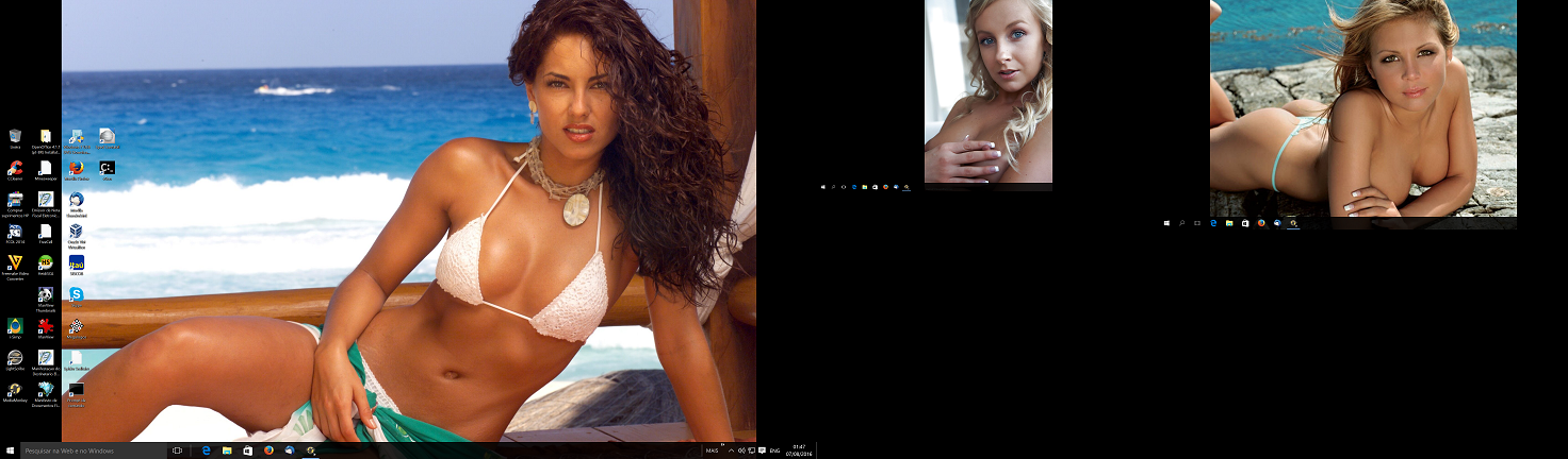 Alguém encontrou a minúscula barra do menu iniciar, e os minúsculos ícones da área de trabalho? (desconto pra foto da mulher que tira a atenção.... rs)