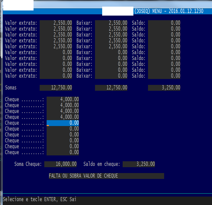 A intenção é mostrar em cada extrato, quanto os cheques causaram de baixa, e qual o saldo restante.