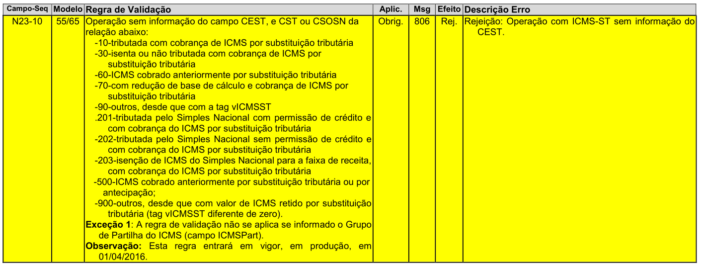 Exceção 5: A regra de validação acima não se aplica nas NF-e de