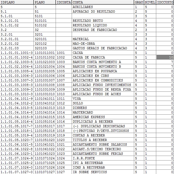 IDPLANO - Numero completo e unico para a conta ou item da hierarquia