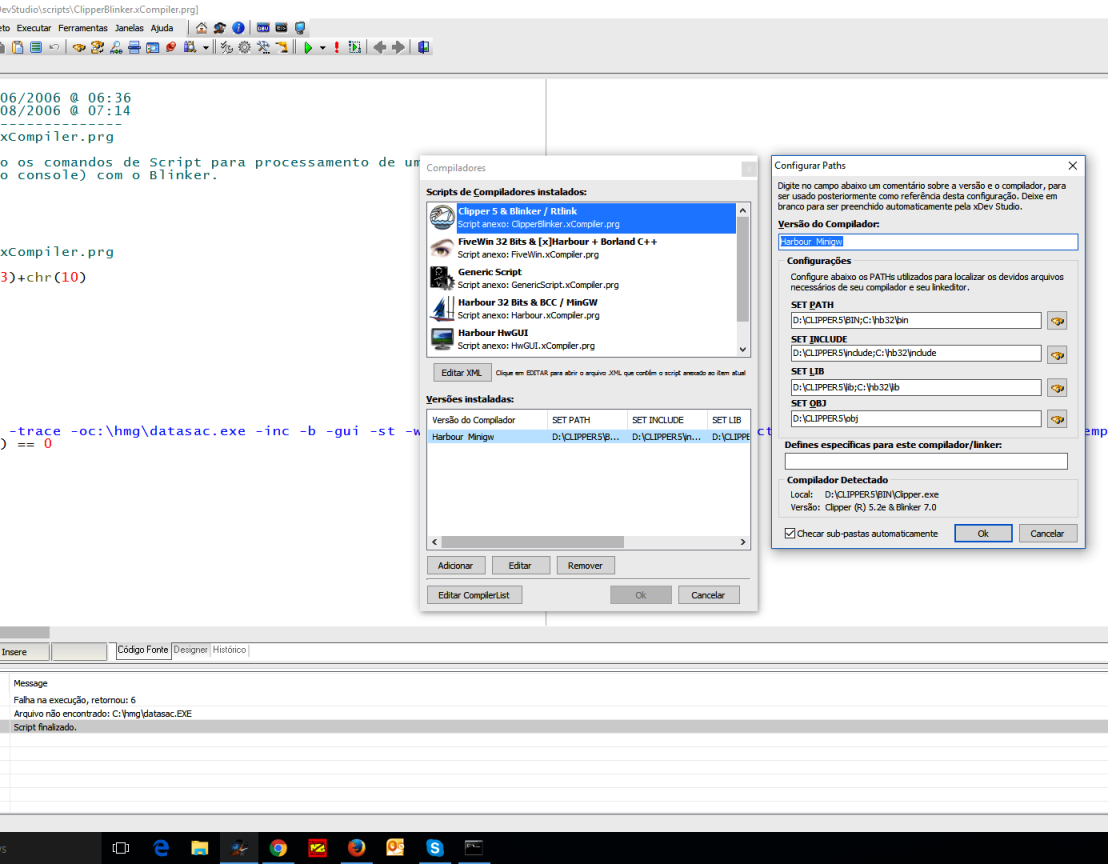 No xDev... Ferramentas -> Configurar Compiladores -> Escolhi Clipper & Blinker (Sei sei é harbour mas vai por mim só consegui nesse pra ficar Harbour + MinGW)