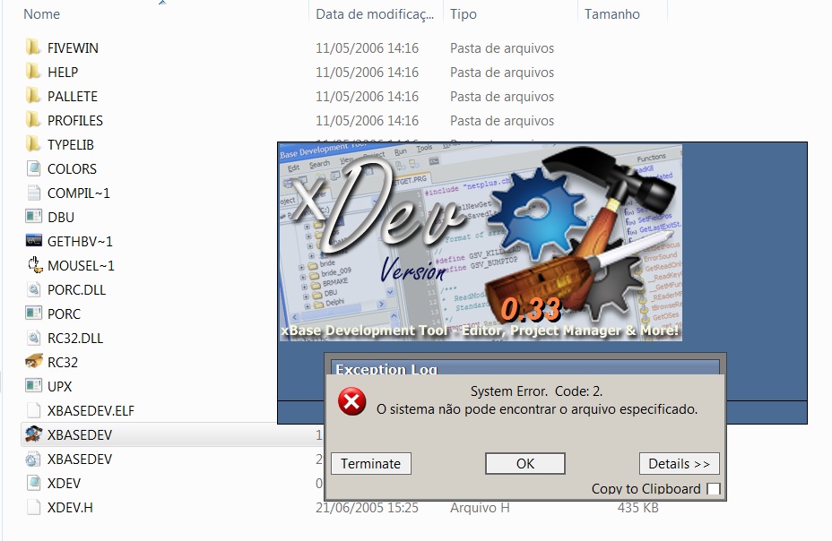C:\xDev>xbasedev   -> Versão velha, não usar.